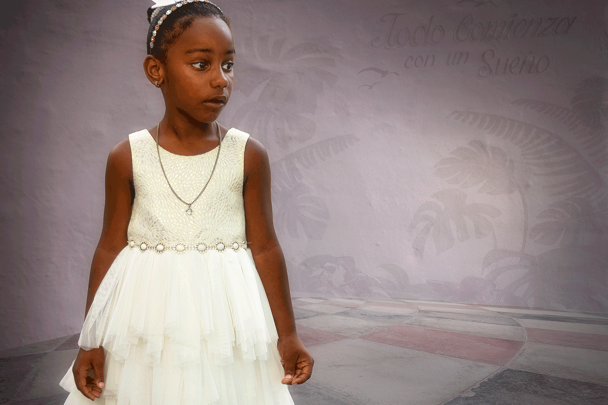 Die Fotos hängen in einem kleinen Seitengang. Es sind Fotografien, die 2024 am Rande des Kinderkarnevals (carnaval juvenil) entstanden. Es sind Schnappschüsse. Die Fotos sind nicht gestellt, was dazu führt, dass der Hintergrund zufällig und nicht immer passend ist. Aus diesem Grund sind die Porträts freigestellt und vor einen fiktiven, erdachten Hintergrund gestellt. Dies gestattete auch den Hintergrund farbig und passend zum Porträt zu gestalten.